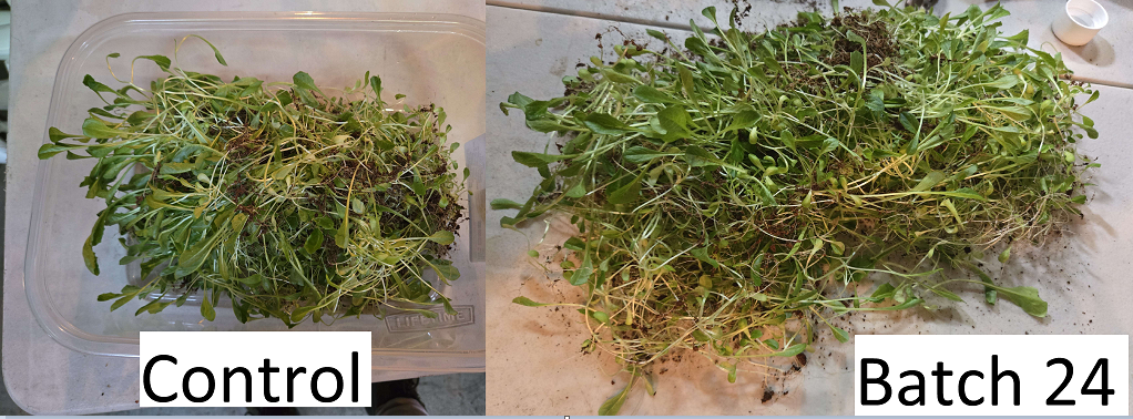 During the testing for batch 24, we increased the quantity of seeds in order to get a larger dataset. WriggleBrew caused so many to sprout that the resulting plants were too many to fit on our scale!