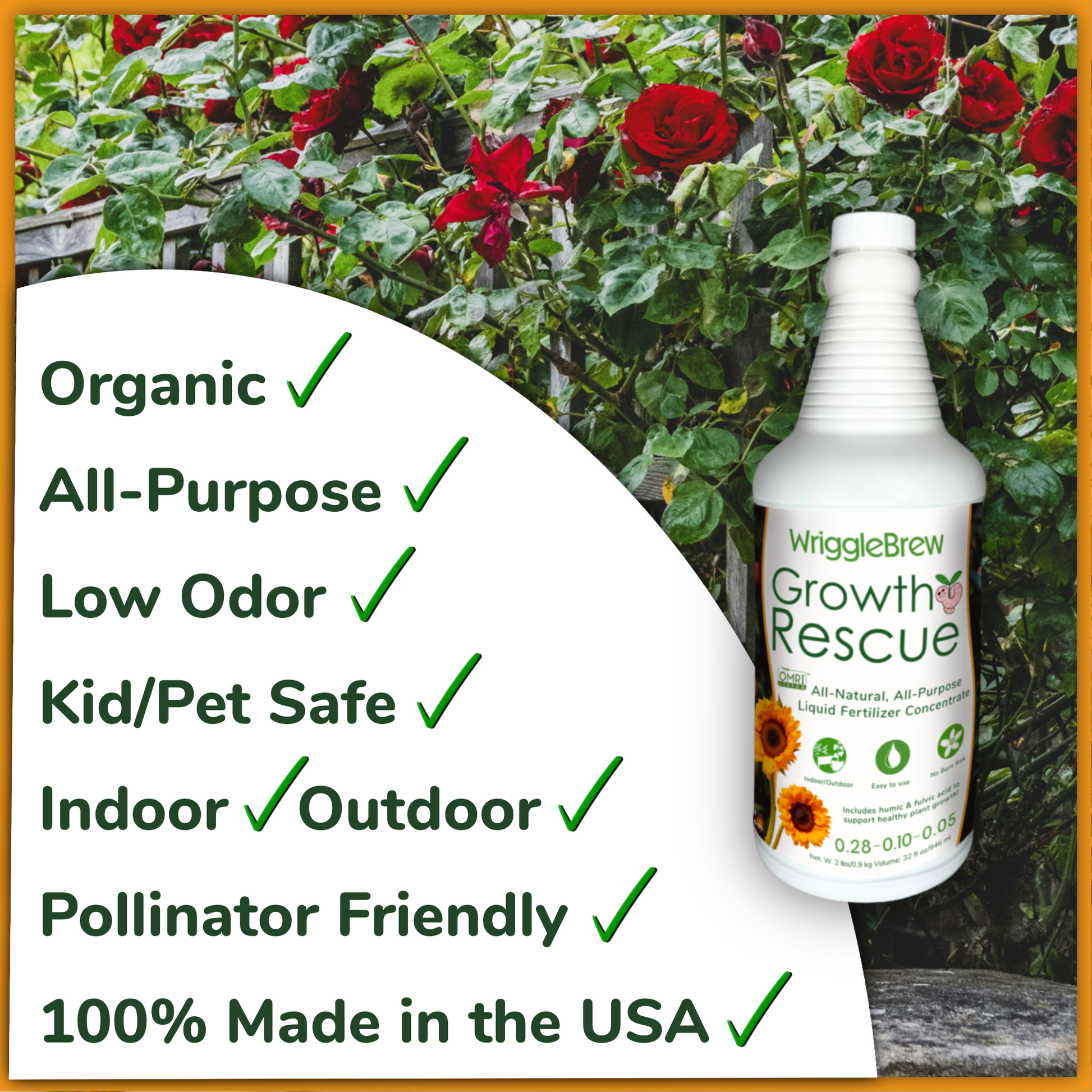 WriggleBrew G&R is made from worm castings AKA mother nature’s favorite fertilizer. There are other organic fertilizers out there, but they’re smelly, hard to use, and sometimes just completely ineffective- not to mention that none can do everything that’s in WriggleBrew! We’ve concentrated the power of odorless worm poop in one bottle and added microbes & immune boosting ingredients for a complete plant health plan.
